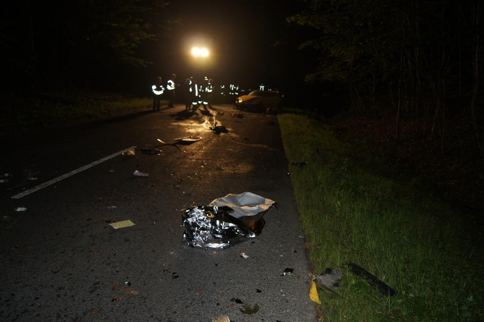 Dauer: 3,5 Std Einsatzdokumentation: Um 23.36 Uhr wurde die Wehr Heiligenstadt mit dem Alarmspruch "Ausleuchten einer Einsatzstelle" alarmiert. Ein Fahrzeug war am Berg zwischen Neumühle und der Abzweigung Stücht/Schloss Greifenstein verunfallt. Während die FF Aufseß den Verkehr aus Richtung Aufseß umleitete und die Einsatzstelle im oberen Teil ausleuchtete, übernahm die FF Heiligenstadt die Absicherung an der Abzweigung zur Greifensteinstraße und die Ausleuchtung des unteren Bereiches. Da nicht auszuschließen war, dass der Fahrer alleine unterwegs war, wurde ein Hubschrauber mit Wärmebildkamera angefordert, der die Waldgebiete rechts und links der Staatsstraße absuchte. Es wurden glücklicherweise keine weiteren verletzten Personen entdeckt. Nachdem der Gutachter seine Arbeit getan hatte, wurde zusammen mit dem Straßenbauamt die Unfallstelle aufgeräumt und die Straße von Autoteilen und Öl gereinigt. Vor Ort waren: NAW, RTW, bis zu 3 Streifenfahrzeuge der Polizei, LF und MTW der FF Aufseß, TLF und TSF der FF Heiligenstadt; zur Unterstützung 1 Polizeihubschrauber.