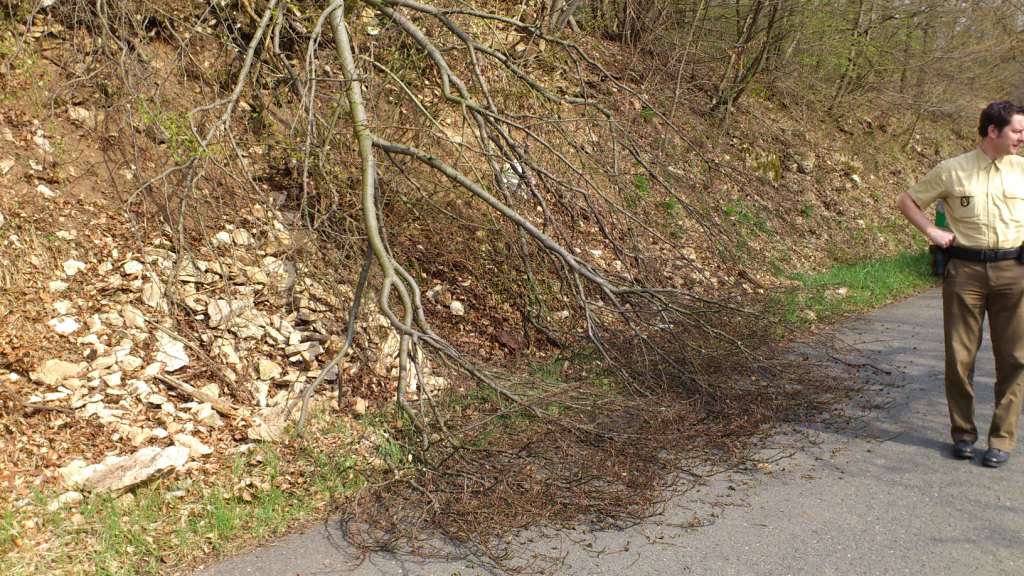 gerufen. Auf Grund von losem Erdreich hat sich ein Baum geneigt und die Fahrbahn
