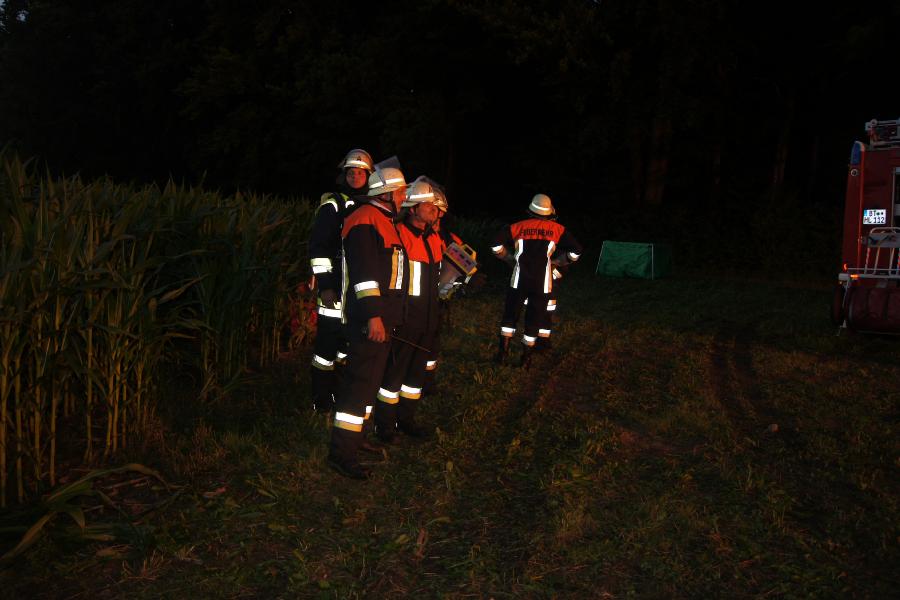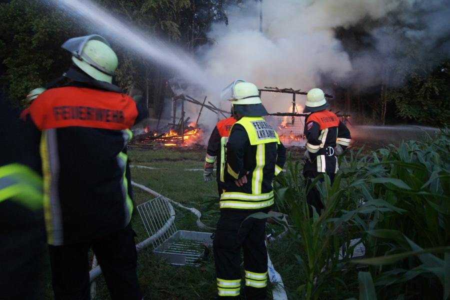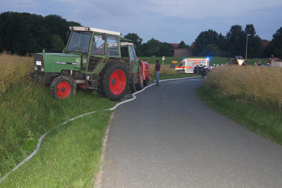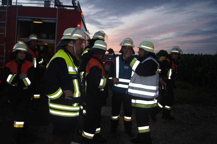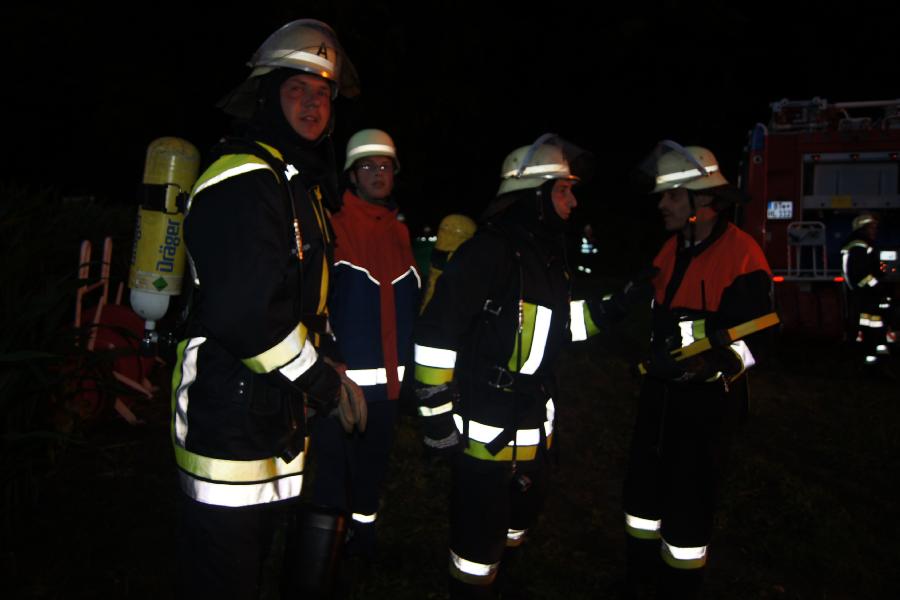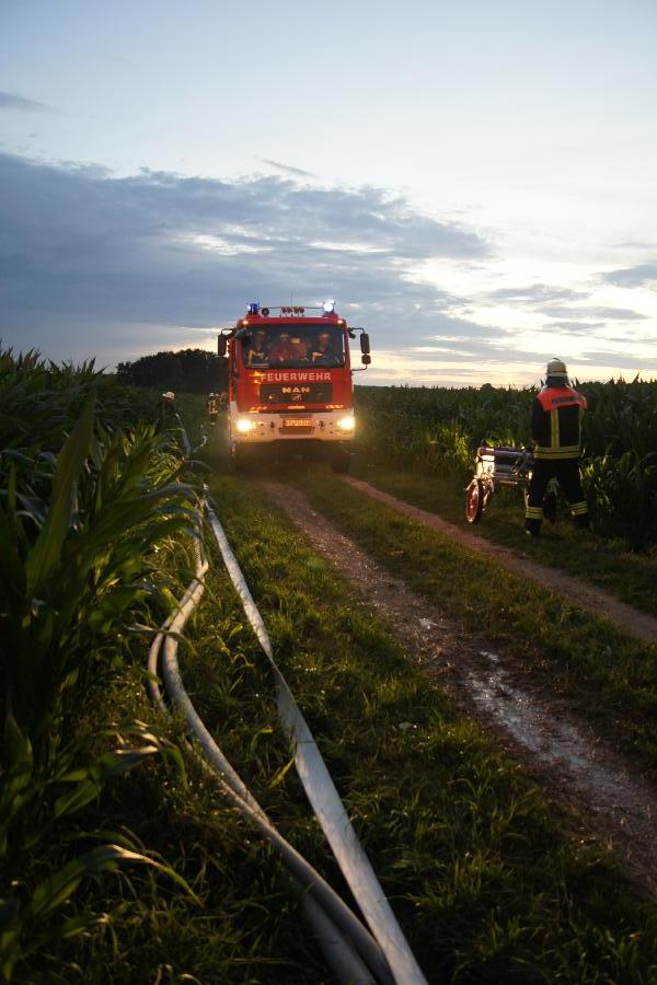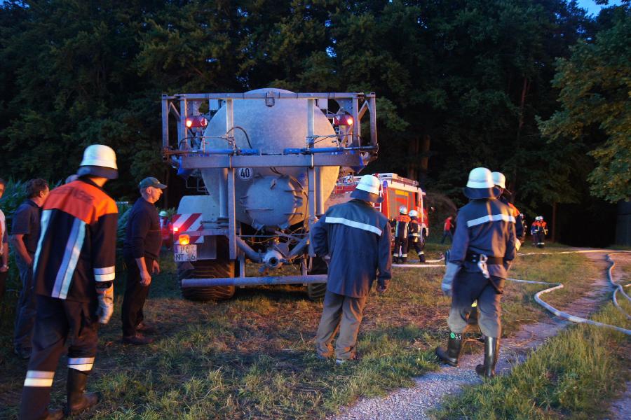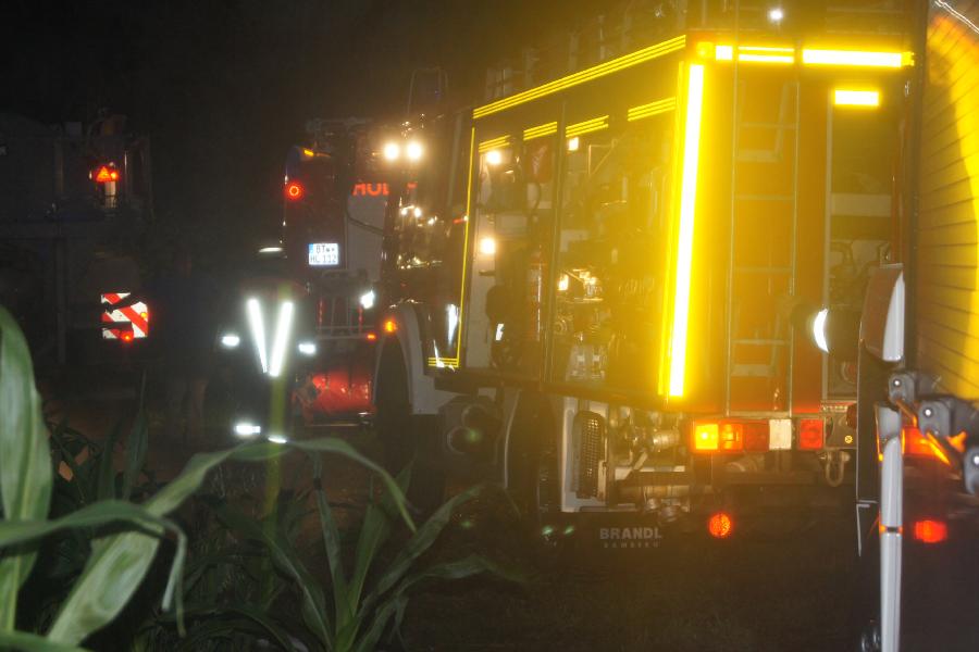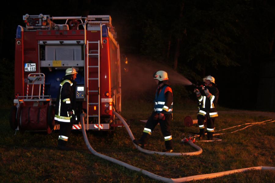 Fahrzeuge stellte die Löschwasserversorgung sicher. Eine bereits begonnene