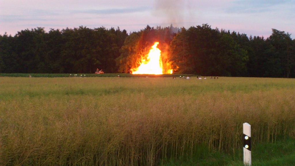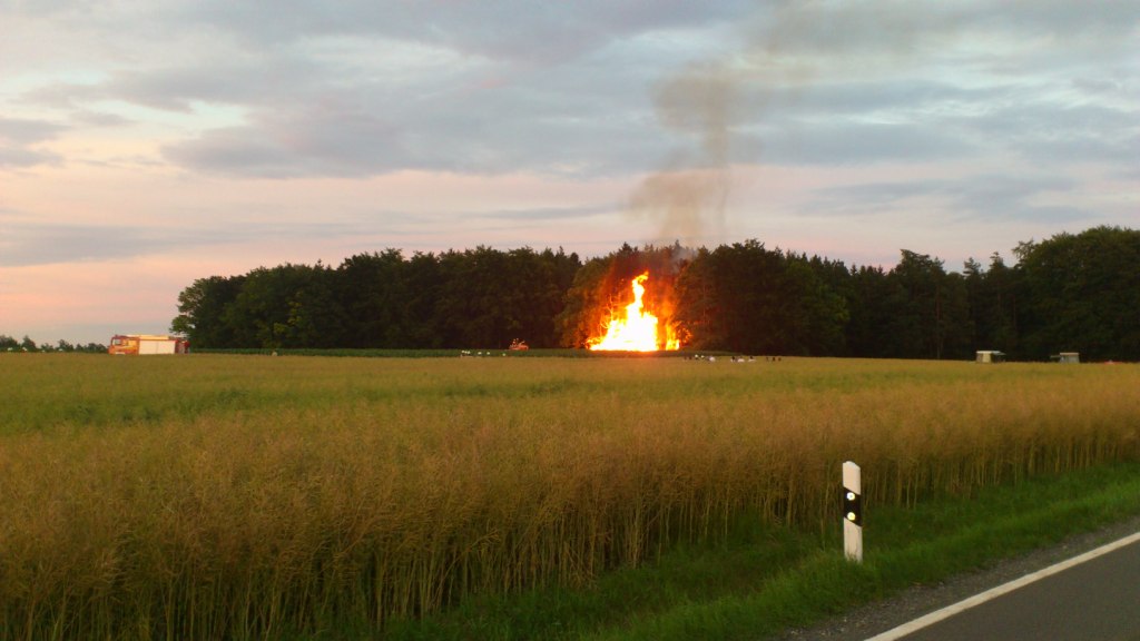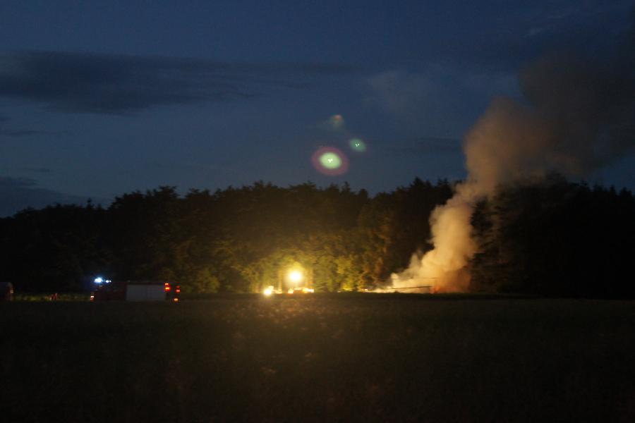 Waldrand. Schon bei der Anfahrt vor Aufseß konnte man den Feuerschein erkennen.