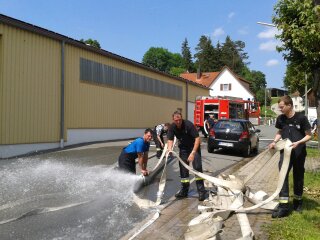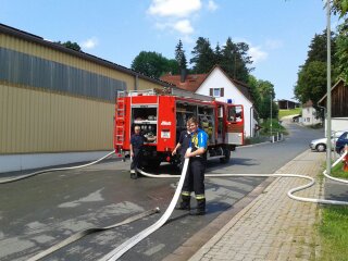 alarmiert. Die FF Burggrub unternahm den ersten Löschangriff - Wasserentnahme