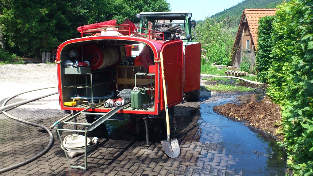 - auch stellte ein Nachbar das Wasser seines Swímming Pools zur Verfügung, falls
