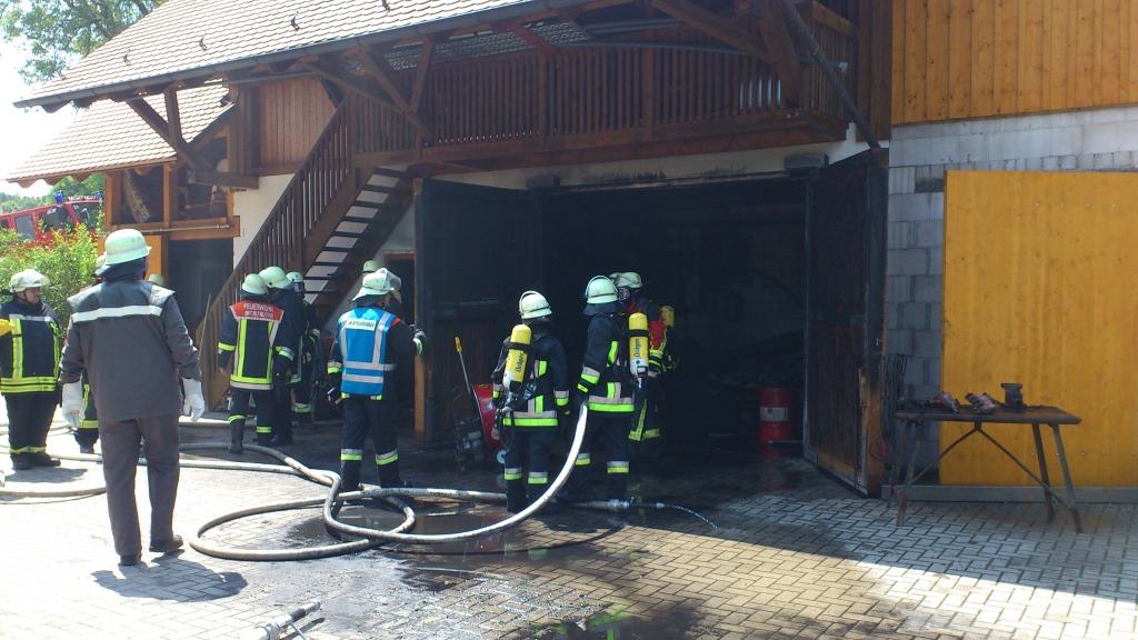 im Ortsteil Burggrub brennt ein Blockheizkraftwerk. Ebenso wurden die Feuerwehren in