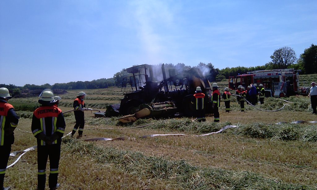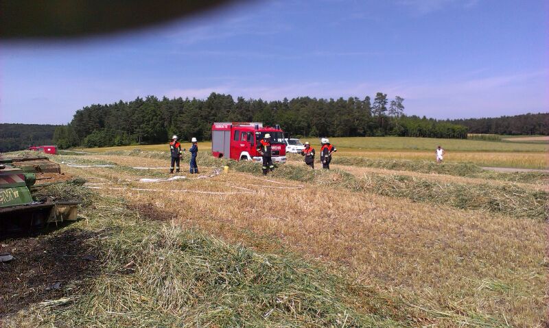 geriet ein selbstfahrendes Mähwerk in Brand. Der Landwirt, der eine