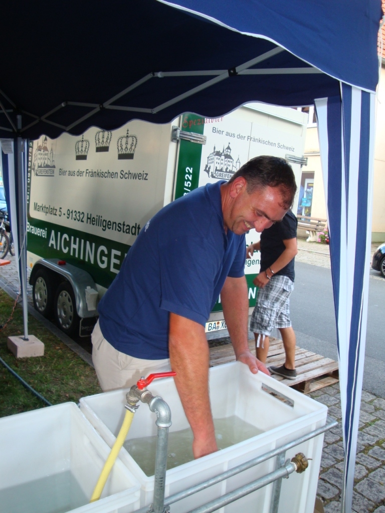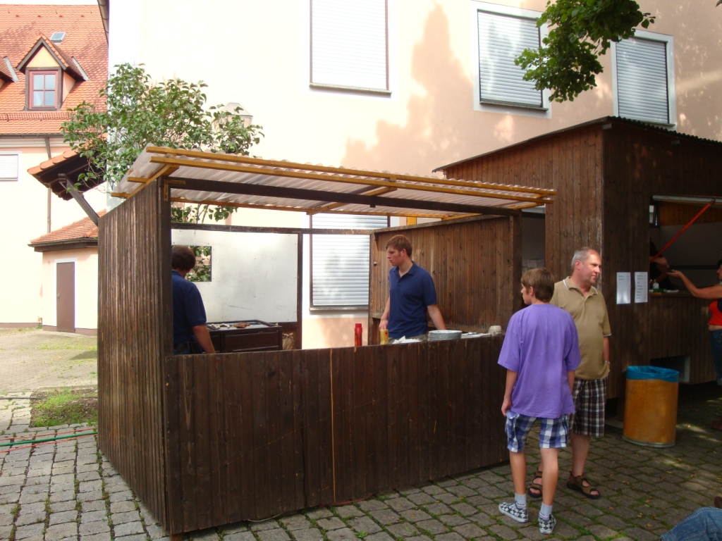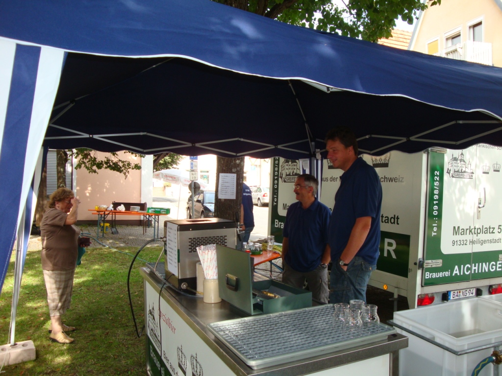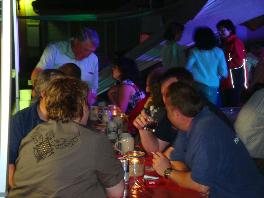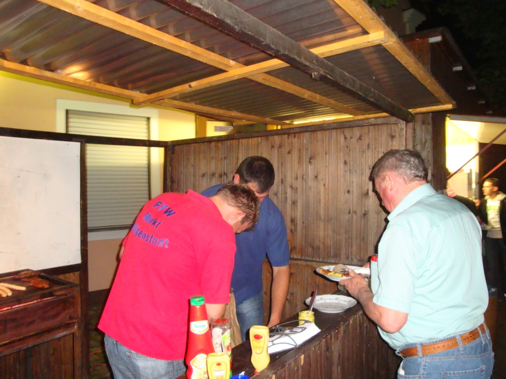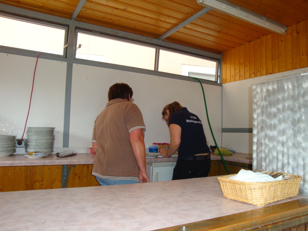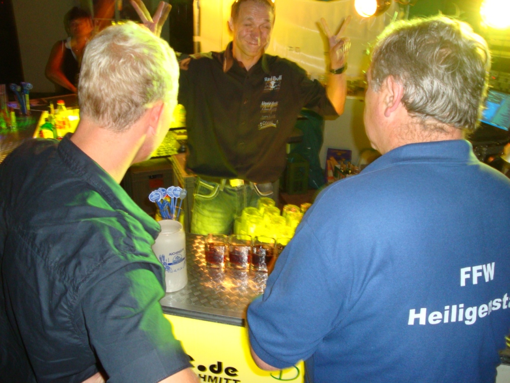 Wie in jedem Jahr fand das Grillfest der FF Heiligenstadt wieder am ersten Wochenende im August statt. Am Samstag, den 06.08., luden wir wieder die Bevölkerung und unsere Freunde und Gönner unter die Linden ein. Leider regnete es im Verlauf des frühen Abends, was die "hartgesottenen" nicht davon abhielt, bis in die Nacht hinein bei Bier und Gegrilltem zusammen zu sitzen. Hier einige Impressionen: Die Ruhe vor dem Sturm: Der Grill wurde bereits angeschürt. Auch am Getränkestand liefen die letzten Vorbereitungen Ebenso im "Küchenwagen" Während das "Makrelengrillteam" bereits in Action war,... ... herrschte am Getränkestand noch relative Ruhe (Beachte: optimale und synchrone Handhaltung! ;.) ),.. ... ebenso im Wagen. Und dann ging's los Auch Hausmänner waren gefragt ;-) Unsere Gäste "Die Bar ist eröffnet" Der Barkeeper war gut drauf! Bestellungen konnten auch telefonisch aufgegeben werden ;-) Die Hotline war immer besetzt! Auch unsere Jugend war gut drauf!