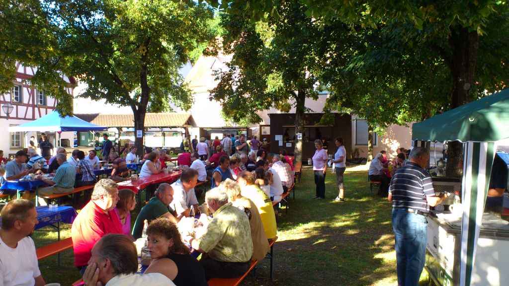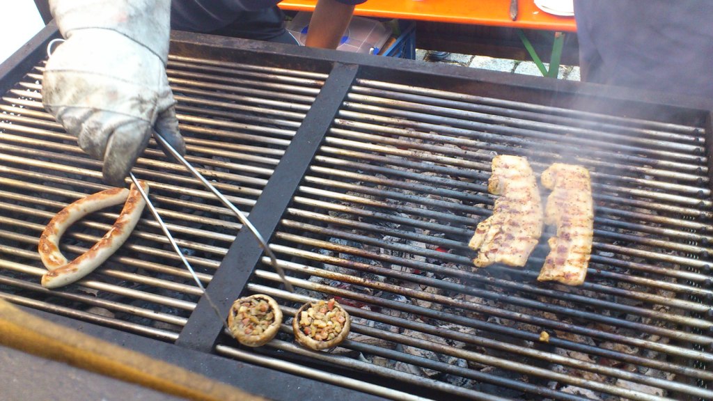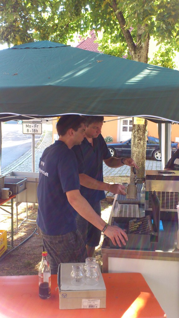 Am 18. August war es wieder soweit: es fand unser jährliches Grillfest unter den Linden am Marktplatz in Heiligenstadt statt. Gut gewappnet gingen wir den Nachmittag an. Leider sind einige Highlights ausgefallen: ein altes Magirus-TLF konnte wegen technische Probleme nicht kommen. Ebenfalls waren die Kameraden aus Eckersdorf mit ihrem neuen HLF20/16 nicht vor Ort. Nichts desto weniger war es wieder eine gelungene Veranstaltung. Auf Grund der Hitze kamen die meisten unsere Gäste erst ab ca. 18.00 Uhr - blieben dafür aber etwas länger. Hier einige Impressionen: Die letzten Aufbauarbeiten sind fast abgeschlossen. Für die Kinderbelustigung ist alles vorbereitet - der Platz auch abgesperrt. Die Tische stehen - der Platz unter den Linden ist hervorragend geeignet für solch ein Grillfest. Auch unser TLF ist bereit, um gezeigt zu werden. Warten auf den "Grillfesteinsatz" Die ersten Nachwuchsfeuerwehrleute im Einsatz... ... mit tatkräftiger Unterstützung der Väter. Fast alles gelöscht (s. Schattenbild) Das erste Bier wird gezapft. In der Grillbude wird der Rauchabzug geöffnet - cabriomäßig! Trotzdem eine schweißtreibende Arbeit. Erstmalig gab es Champignons (gefüllt) vom Grill Langsam füllten sich die Plätze. An den Kübelspritzen war immer was los - Wasserversorgung aus dem Brunnen klappte hervorragend!
