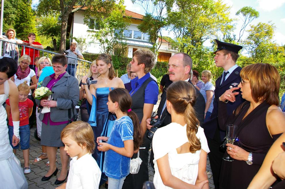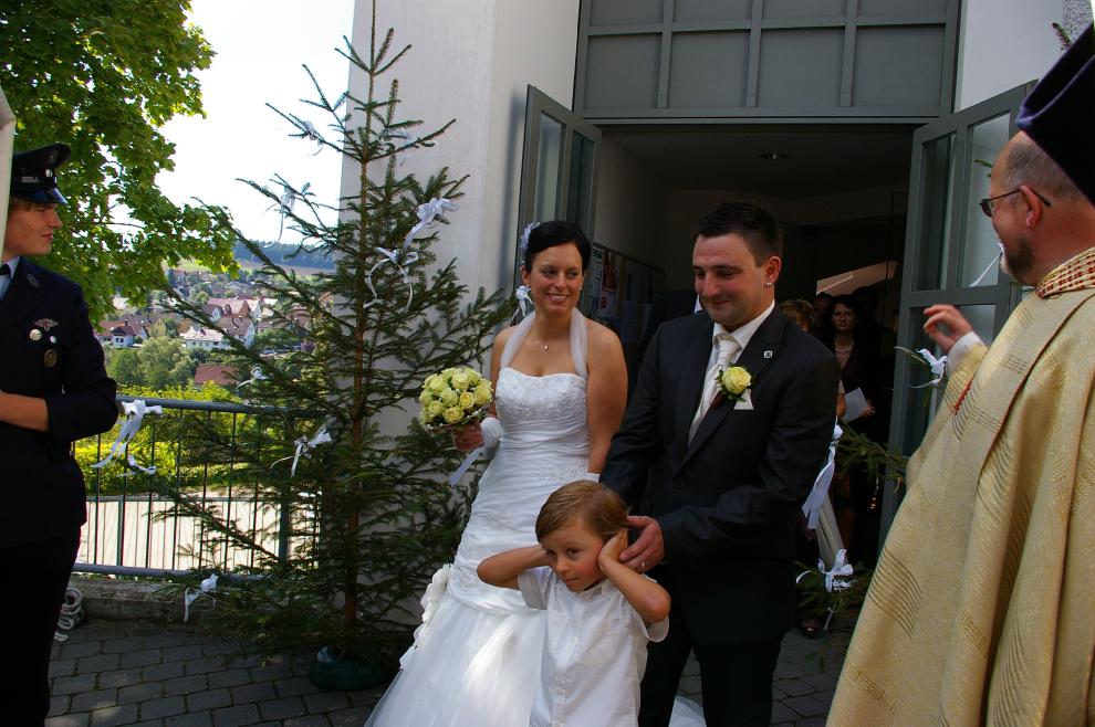 Am 3. September haben sich Nina und Paul in der Pfarrkirche St. Paul in Heiligenstadt das Ja-Wort gegeben. Die Brautmesse hielt Pfarrer Matthias Wünsche, ehemals Pfarrer in Heiligenstadt. Nach der Heiligen Messe fand auf dem Kirchplatz ein Stehempfang statt. Zuvor ging das Brautpaar durch den Spalier ihrer Feuerwehrkameraden (beide sind aktive Feuerwehrler), die sich am Kirchenausgang mit einer "Schlauchspirale" postiert hatten. Hier einige Impressionen: Ankunft des Brautpaares