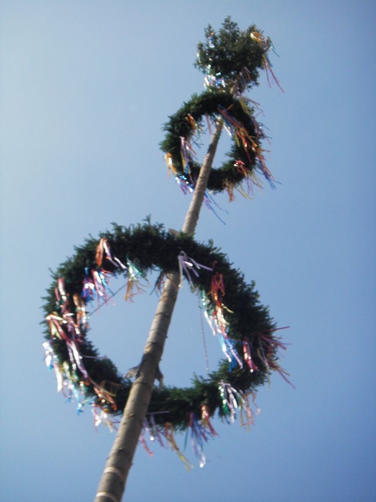 Das Schmücken: Erstmal stärken, ... ...während die Damen nun "angreifen". Verzierung durch einen Mann vom Fach. Nun wird der Transport vorbereitet. Erst noch mal stärken und kurz relaxen, bevor abmarschiert wird. Der Verpflegungswagen für unterwegs (ist ja ein langer Weg von der Raiffeisenstrasse zum Marktplatz). Alles wird nochmals überprüft... ...Unter Aufsicht, versteht sich! Unterwegs war soviel zu tun 8jede helfende Hand wurde benötigt) - deshalb gibt es vom Marschweg keine Bilder. Der Baum wird eingesetzt, ... ... während das Transportmittel aus der Schusslinie gebracht wird. Erfahrene, langjährige Helfer waren auch vor Ort. Der "Aufstellmeister" gibt letzte Anweisungen... ... während sich andere um das leibliche Wohl der hart arbeitenden Kameraden kümmern. Mit von der Partie war wie immer die Hohenpölzer Blasmusik. Bald ist's geschafft! Die letzten Keile werden angebracht. Und dann war's geschafft! Die Stärkung danach. Leichte Nachbesserungen.