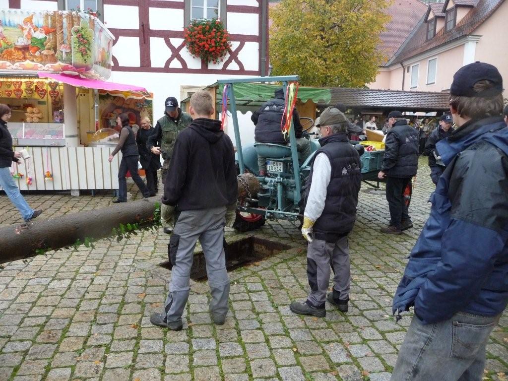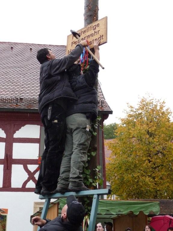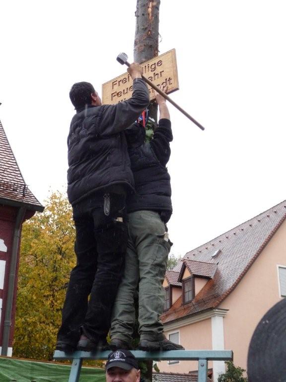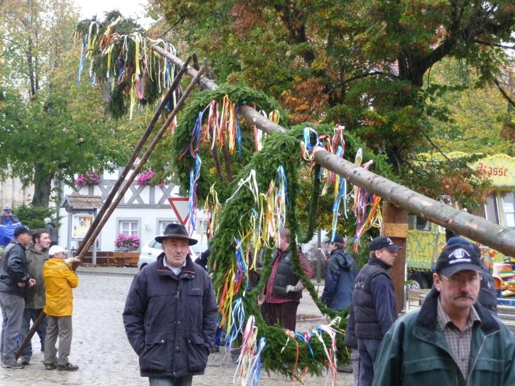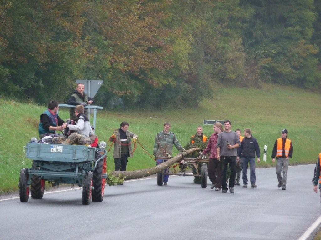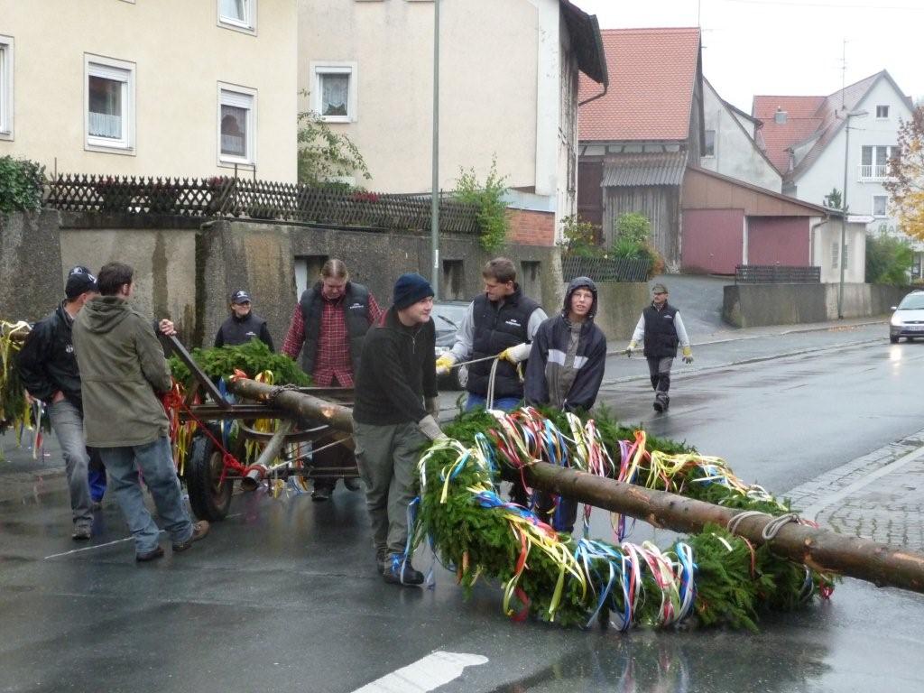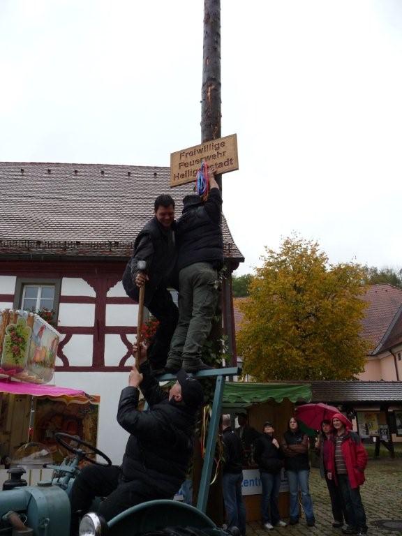 Am 10. Oktober war es wieder so weit: die FF Heiligenstadt stellte zur Herbstkerwa den Kerwa-Baum auf. Die 27 m lange Fichte wurde am Morgen aus dem Gemeindewald abgeholt.