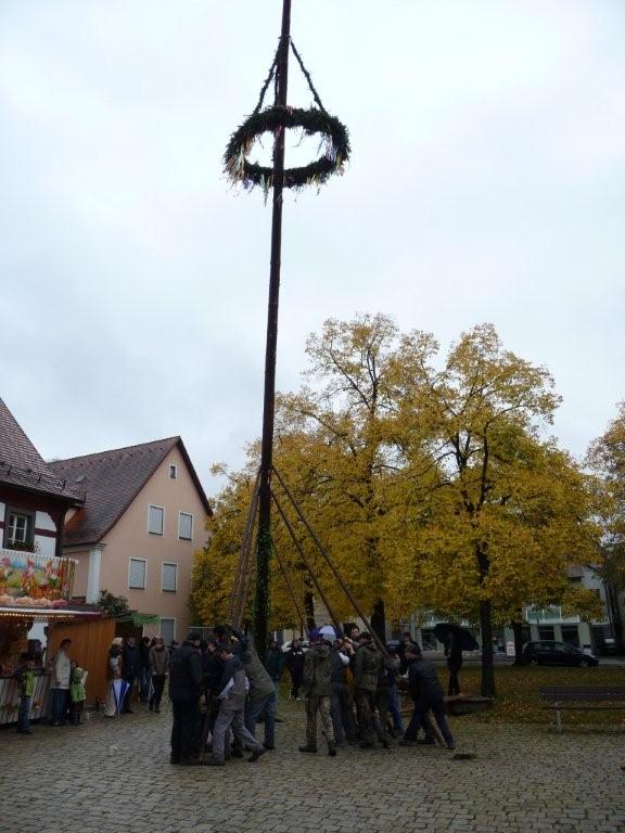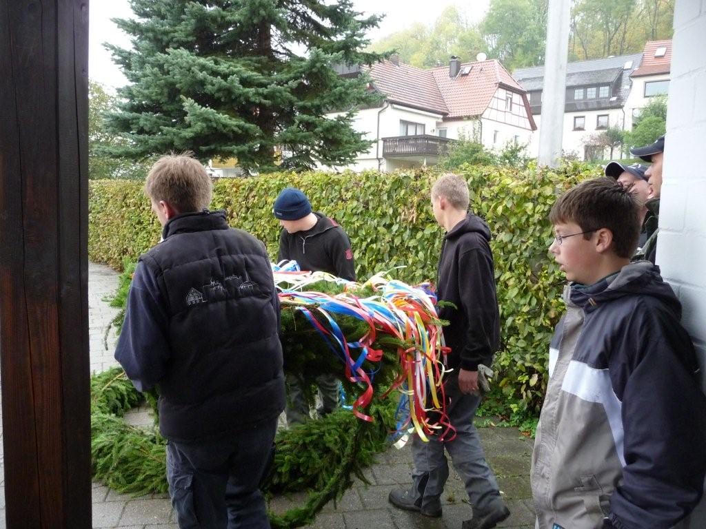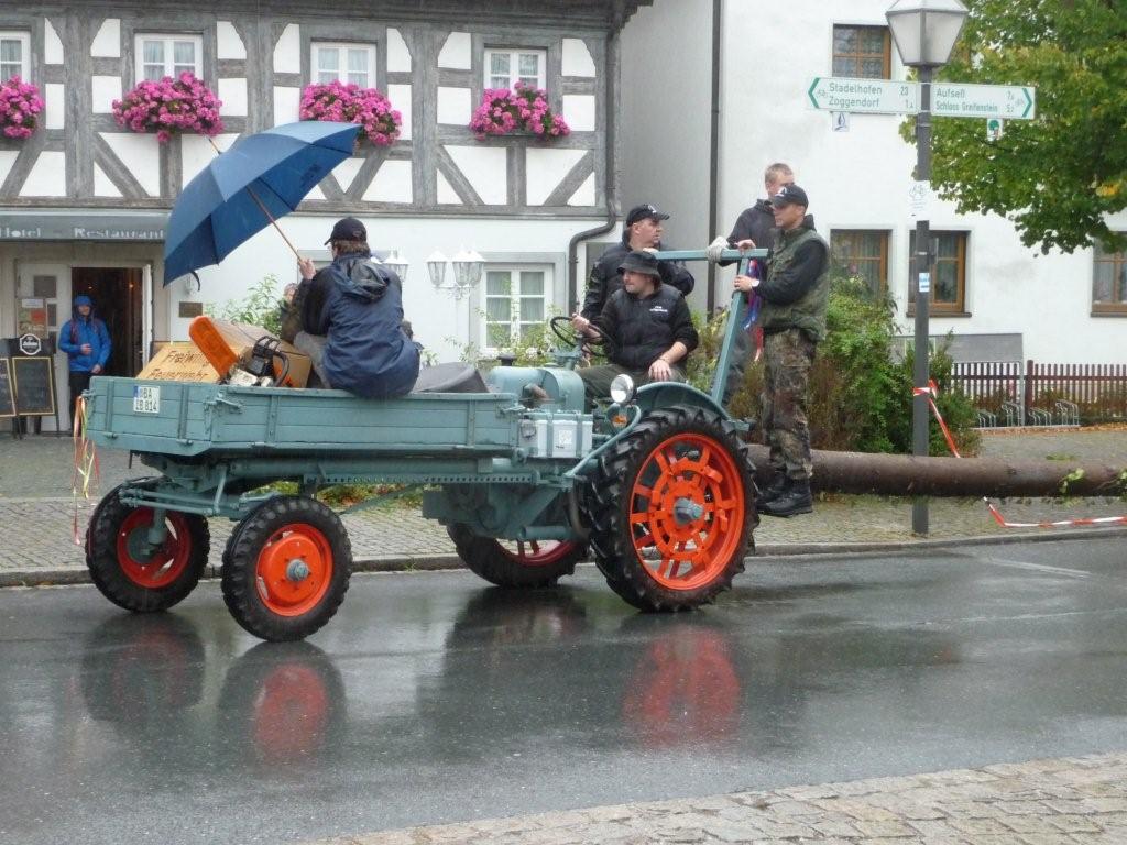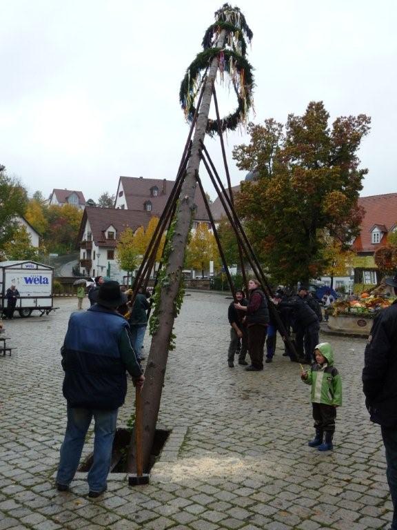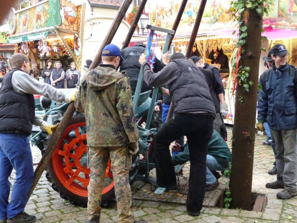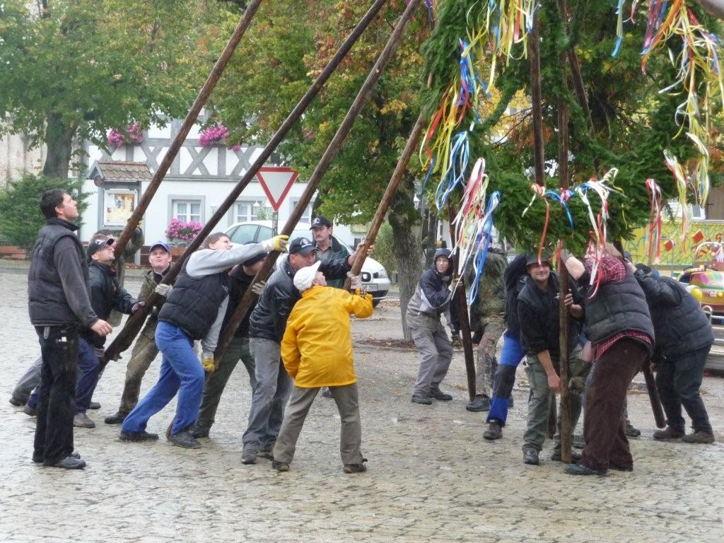 Am 10. Oktober war es wieder so weit: die FF Heiligenstadt stellte zur Herbstkerwa den Kerwa-Baum auf. Die 27 m lange Fichte wurde am Morgen aus dem Gemeindewald abgeholt.