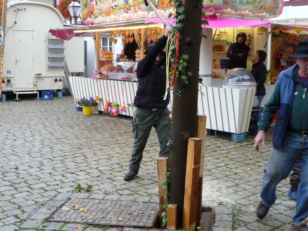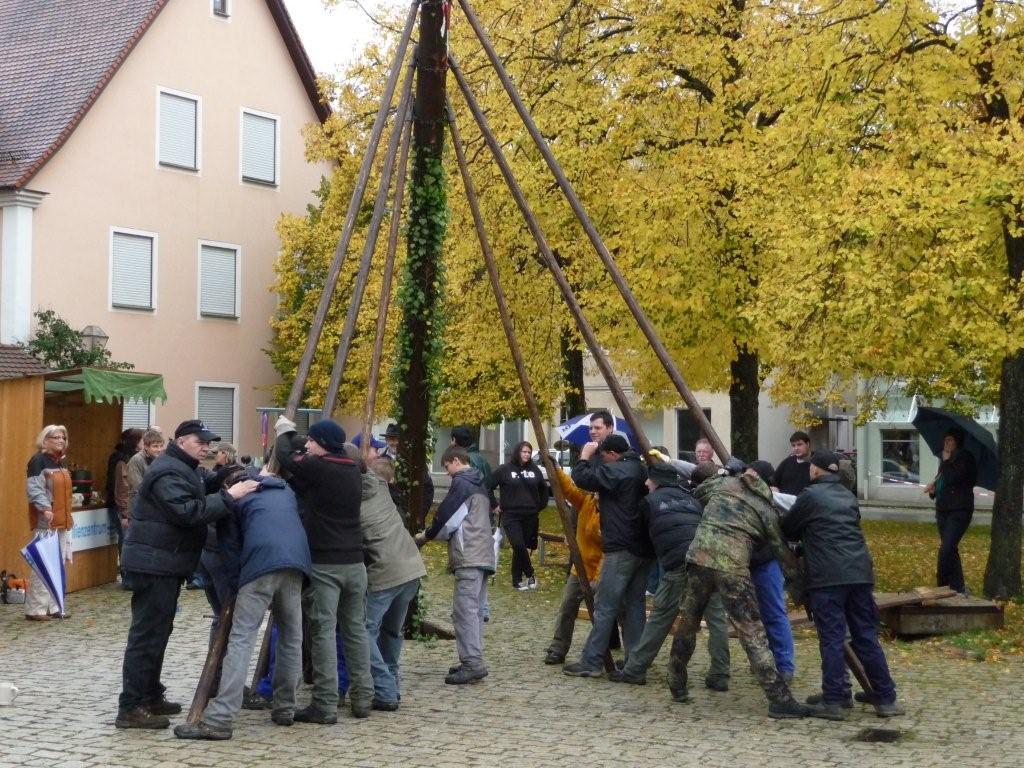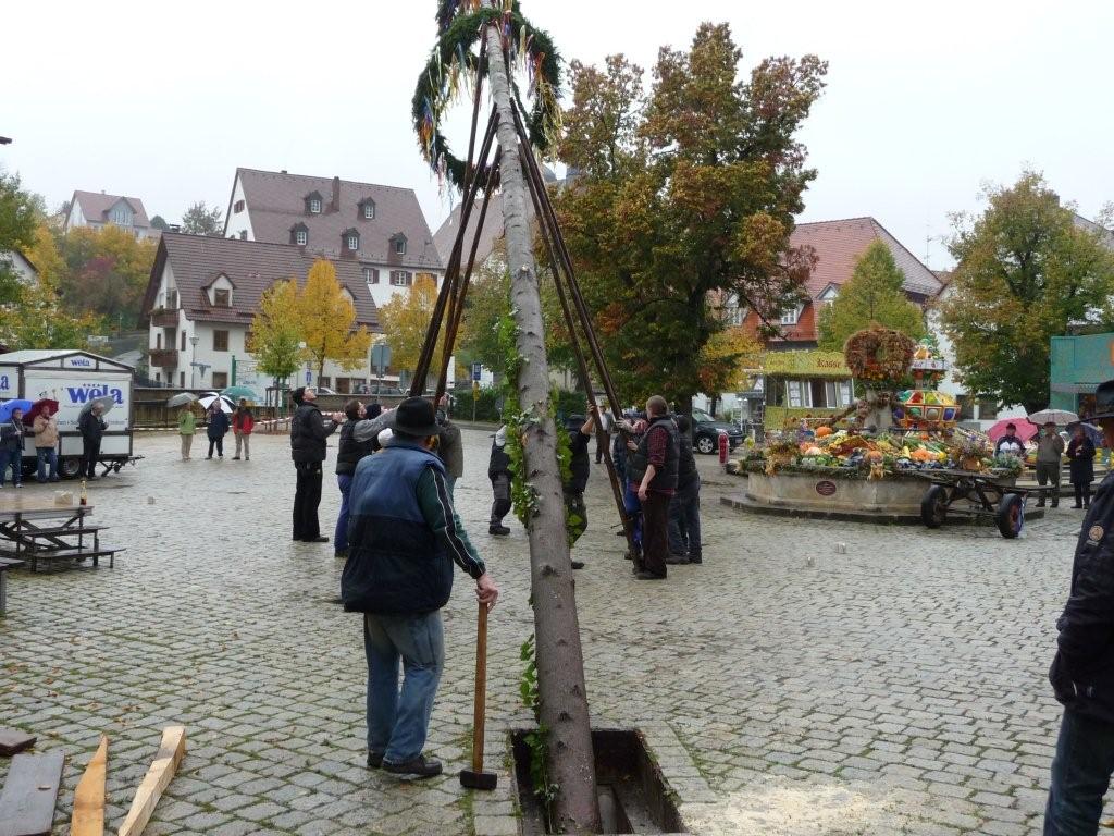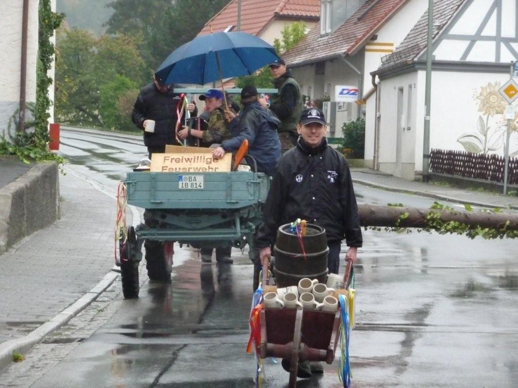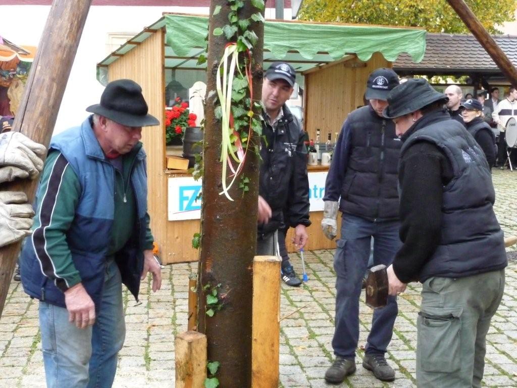 Am 10. Oktober war es wieder so weit: die FF Heiligenstadt stellte zur Herbstkerwa den Kerwa-Baum auf. Die 27 m lange Fichte wurde am Morgen aus dem Gemeindewald abgeholt.