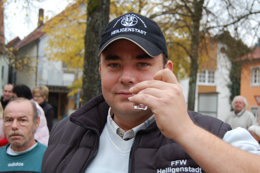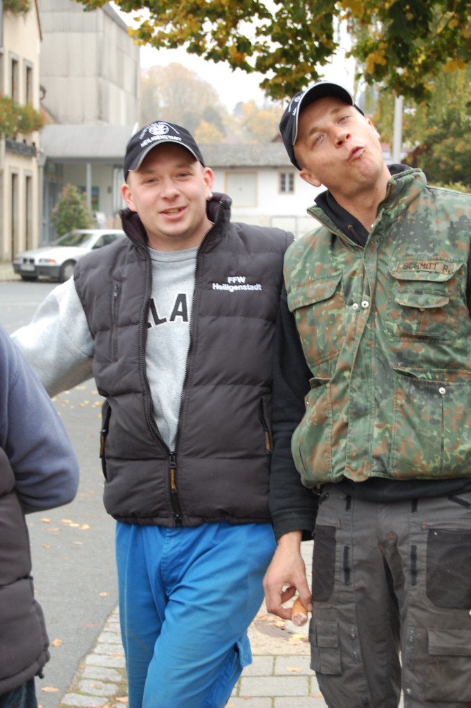 (für nicht-Oberfranken: Kirchweih) Heiligenstadt hat zwei Kirchen - dementsprechend auch 2 mal Kerwa. zur Herbstkerwa, Anfang Oktober, wird von der FF Heiligenstadt der Kerwa-Baum aufgestellt - Gelegenheit, die eine Kameradin oder den anderen Kameraden zu fotografieren. Auch hier wieder Bilder aus verschiedenen Jahren.