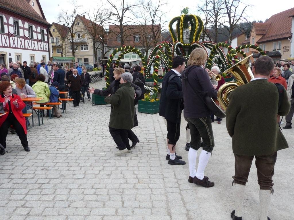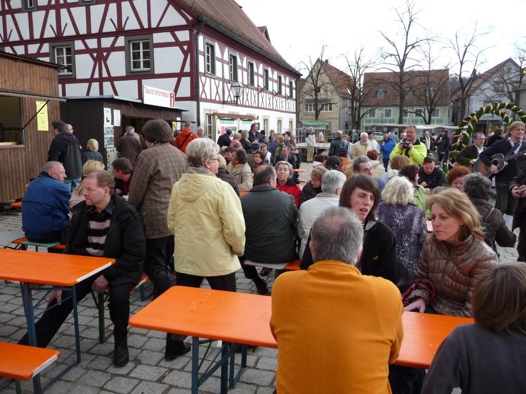 Markplatzes mit Osterbrunnen durch die FF Heiligenstadt verköstigt. Unter der