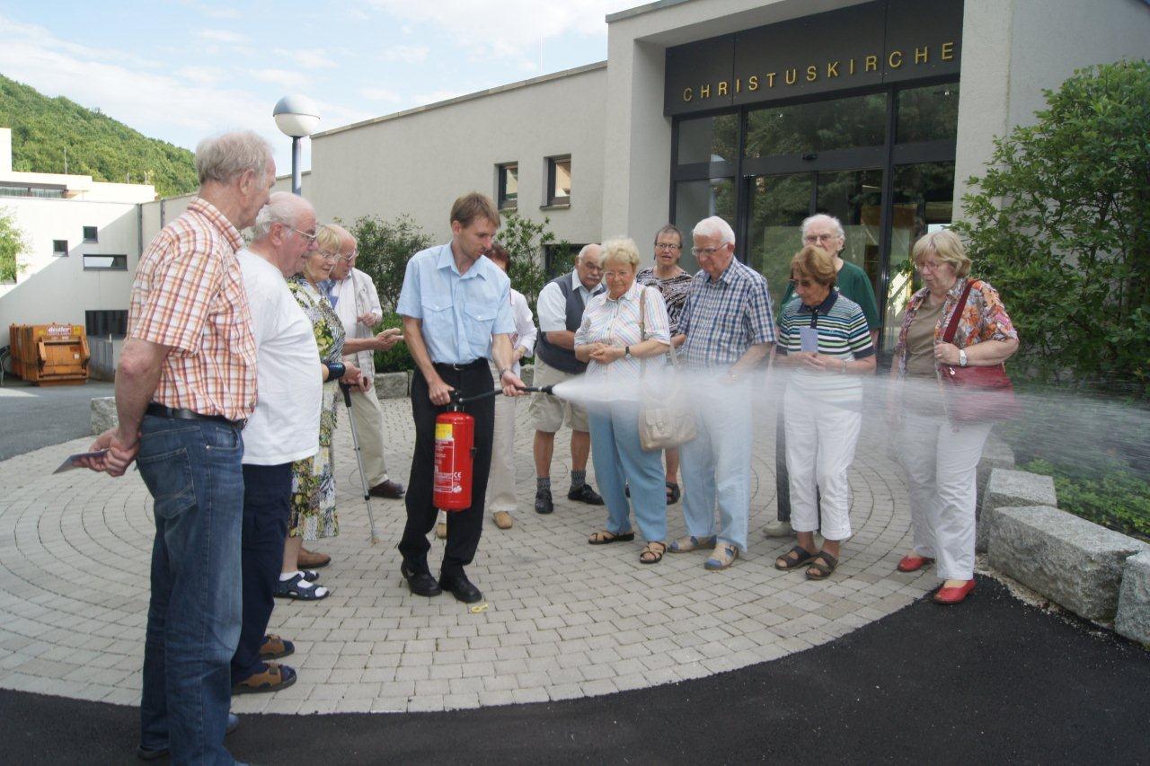 Einige Bewohner der Seniorenwohnungen im Familienzentrum hatten sich eine Einweisung der Feuerwehr gewünscht. Barbara Langer und unser Kommandant Christian Ott haben die FF Heiligenstadt vorgestellt, Tipps zur Brandverhütung gegeben, das richtige Absetzen des Notrufs wiederholt, Hinweise zum richtigen Verhalten im Brandfall gegeben sowie den Umgang mit dem Feuerlöscher geübt. Eine für beide Seiten gelungene Veranstaltung. Anbei einige Bilder.