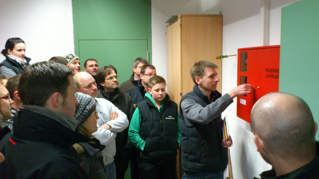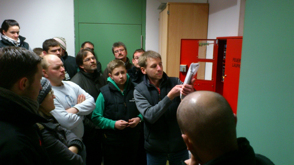 Nachdem nun auch Kindergarten und ein Hort im Schulgebäude untergebracht worden sind, wurde eine automatische Brandmeldeanlage installiert. Um sich mit der Anlage vertraut zu machen und auch das umgebaute Schulhaus kennen zu lernen, traf sich die FF Heiligenstadt zu einer Einweisung und Begehung der Örtlichkeiten.