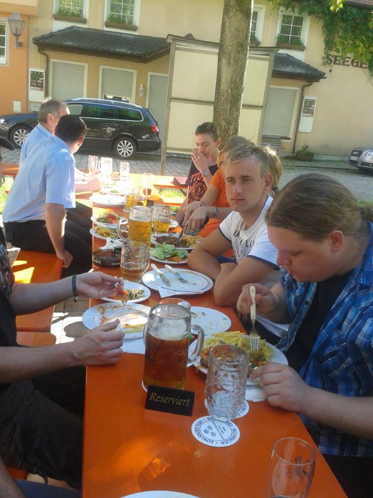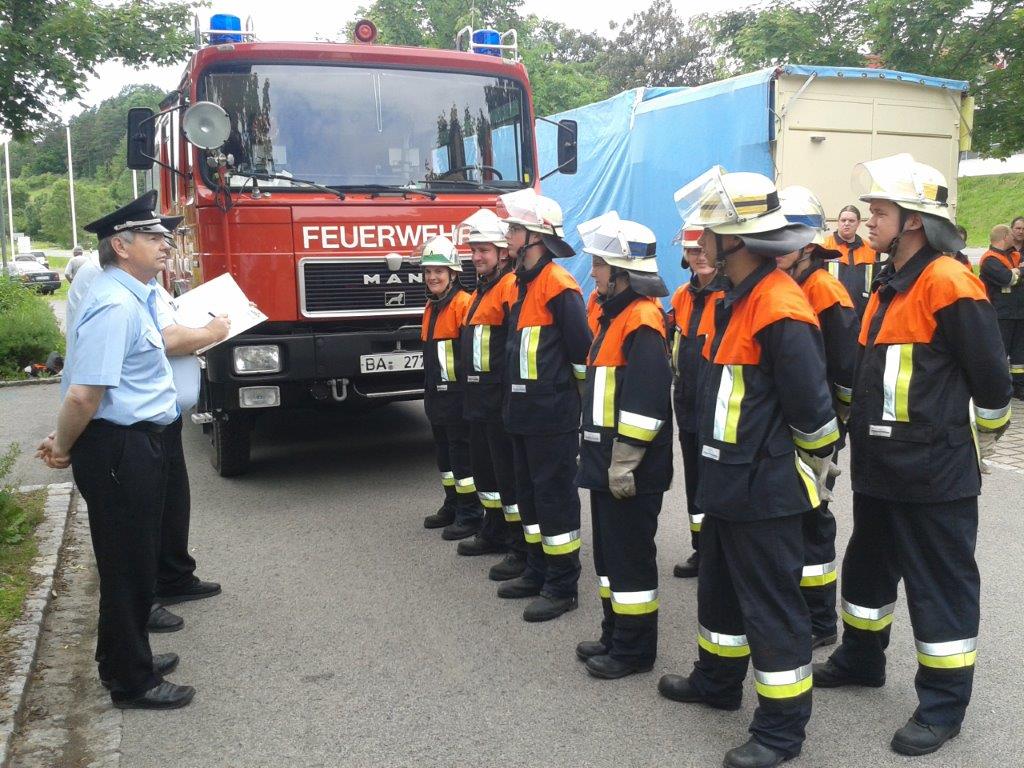 Vor einer solchen Prüfung wird natürlich geübt - was bei über 30° und in Schutzanzug und Helm nicht immer sehr angenehm ist - da tut eine Erfrischung nah der Übung gut: