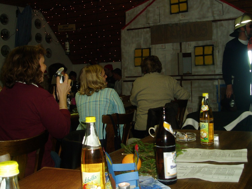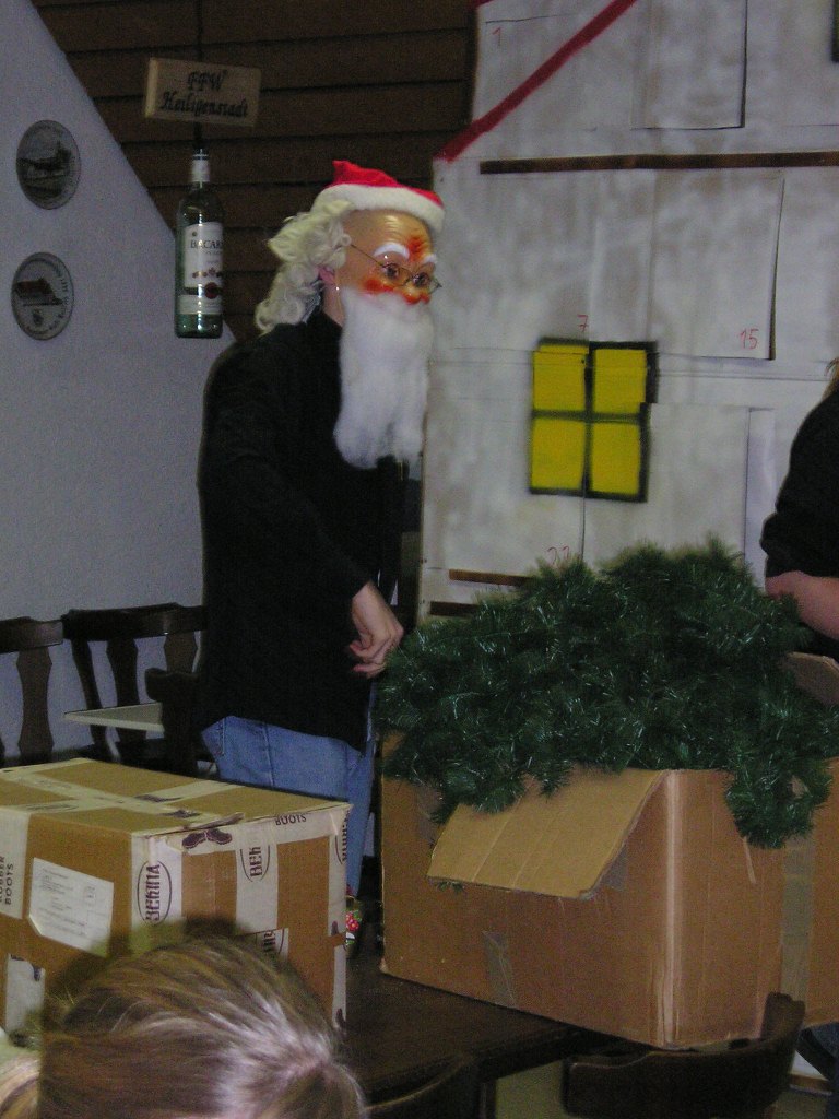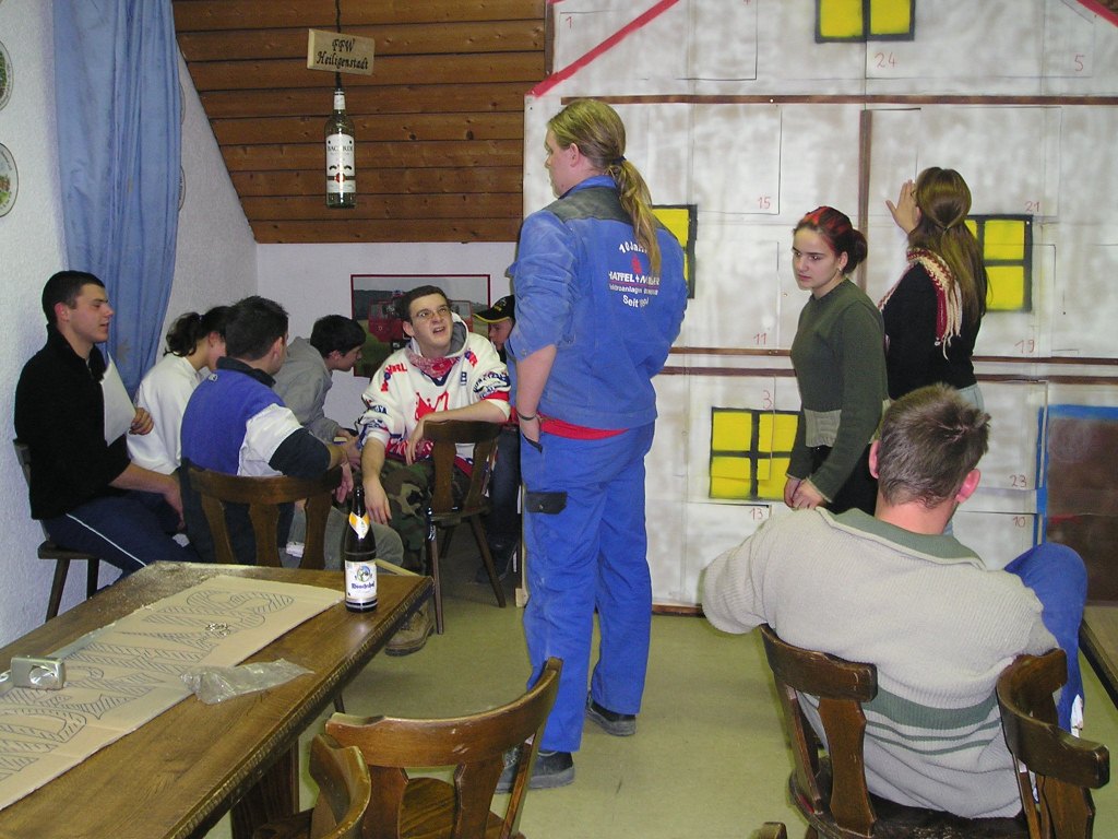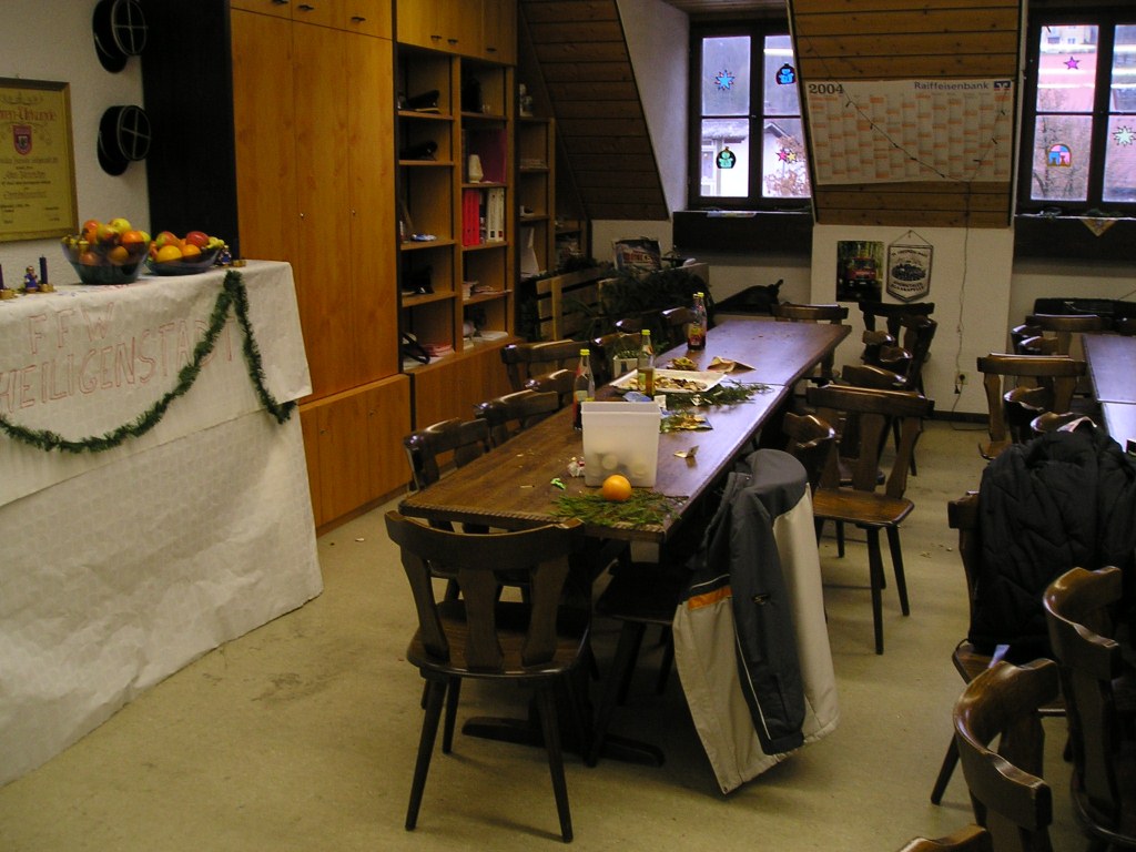 Am Barbaratag (4. Dezember) lud die FF Heiligenstadt zur Weihnachtsfeier ein. Wieder hatten die Jugendfeuerwehr und das bewährte Vorbereitungsteam die Organisation und Durchführung übernommen - es war dies die 10. Weihnachtsfeier! Einige Ereignisse des Jahres wurden nochmals aufgegriffen. Hier einige Bilder: Die Vorbereitung: Vom Dachboden wurden die Utensilien geholt. Ideen wurden "im Laptop" gefunden Scheint recht lustig zu sein, das Programm :-) Alles wird auf Hochglanz gebracht Die Proben beginnen Und immer wieder der Laptop. Kostümprobe Der Baum wird geschmückt Die Bar wird gebaut.. ... und künstlerisch bearbeitet. Weihnachtliche Dekoration wird angebracht Die Reisnägel waren genau abgezählt. Passt scho! Jugendfeuerwehr: Rückansicht... und Vorderansicht Künstler am Werk Die Getränkekarte Was soll uns dieses Bild sagen? In action.. .. hoch konzentriert! "Was das wohl werden soll?" Utensilien für die bar Das fertige Kunstwerk Alles gerichtet. Check am Laptop.