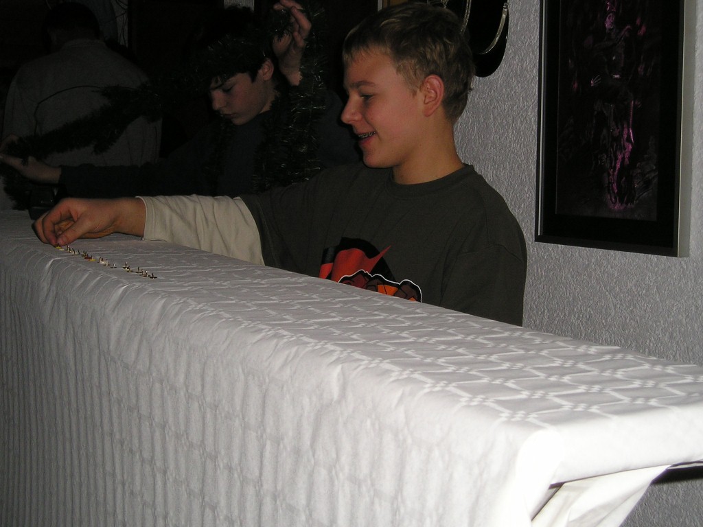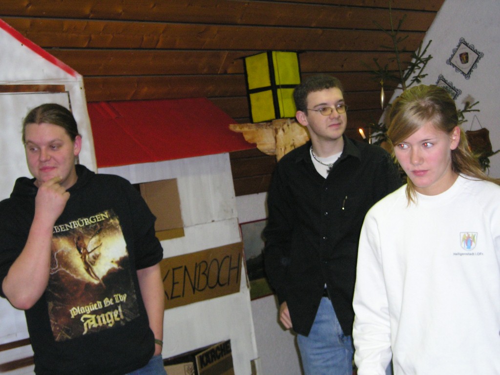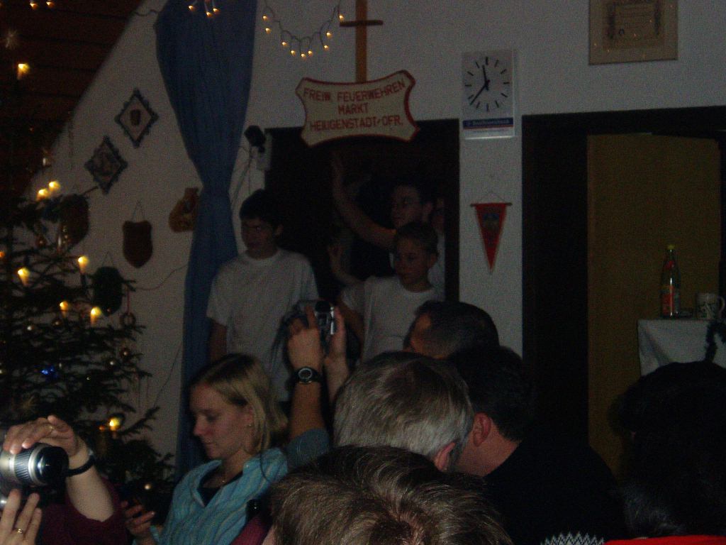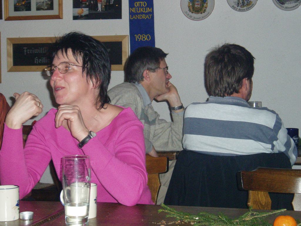 Am Barbaratag (4. Dezember) lud die FF Heiligenstadt zur Weihnachtsfeier ein. Wieder hatten die Jugendfeuerwehr und das bewährte Vorbereitungsteam die Organisation und Durchführung übernommen - es war dies die 10. Weihnachtsfeier! Einige Ereignisse des Jahres wurden nochmals aufgegriffen. Hier einige Bilder: Die Vorbereitung: Vom Dachboden wurden die Utensilien geholt. Ideen wurden "im Laptop" gefunden Scheint recht lustig zu sein, das Programm :-) Alles wird auf Hochglanz gebracht Die Proben beginnen Und immer wieder der Laptop. Kostümprobe Der Baum wird geschmückt Die Bar wird gebaut.. ... und künstlerisch bearbeitet. Weihnachtliche Dekoration wird angebracht Die Reisnägel waren genau abgezählt. Passt scho! Jugendfeuerwehr: Rückansicht... und Vorderansicht Künstler am Werk Die Getränkekarte Was soll uns dieses Bild sagen? In action.. .. hoch konzentriert! "Was das wohl werden soll?" Utensilien für die bar Das fertige Kunstwerk Alles gerichtet. Check am Laptop.