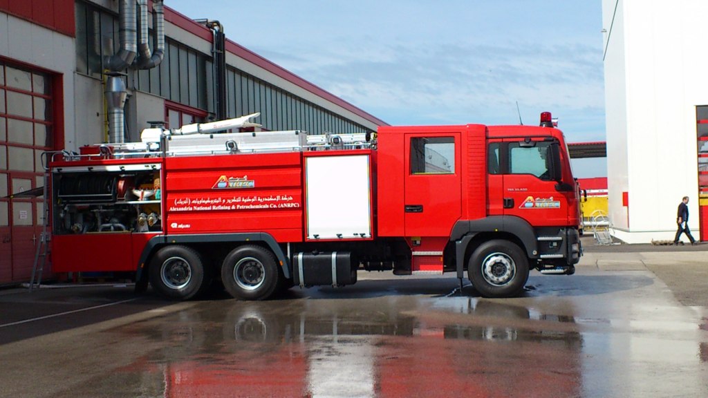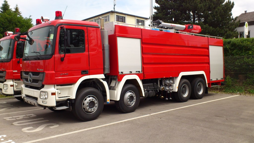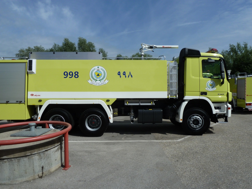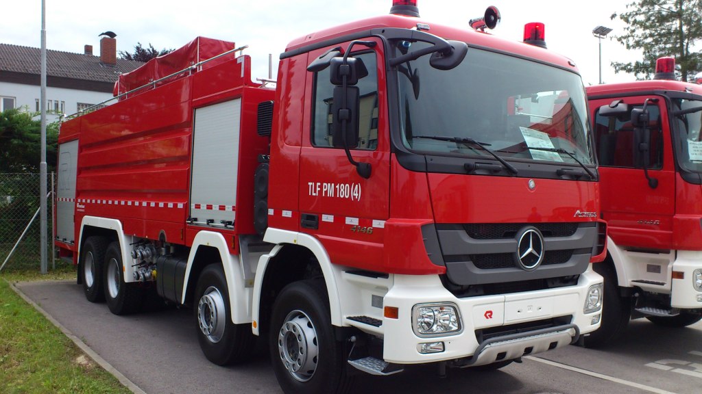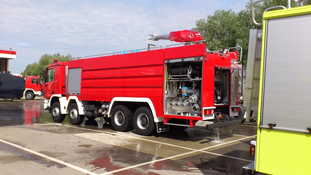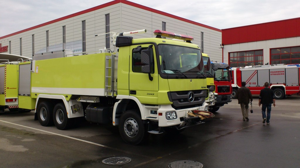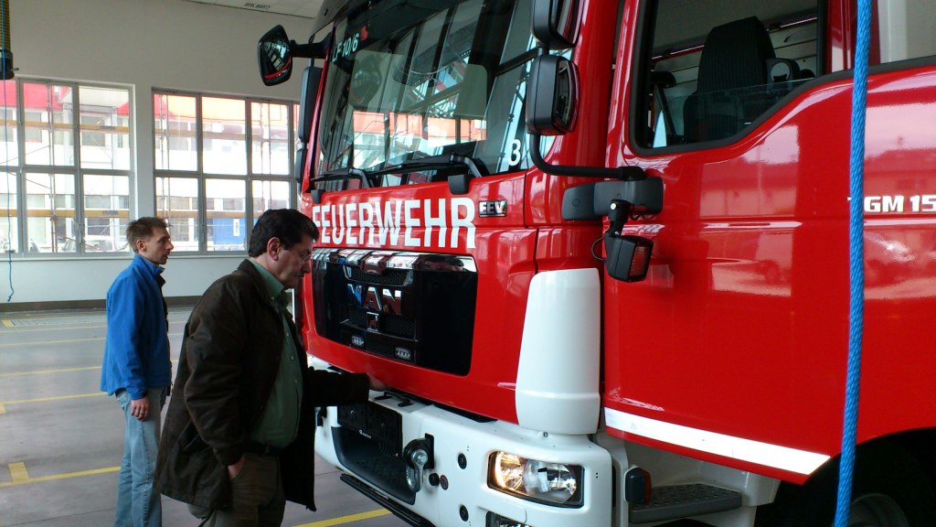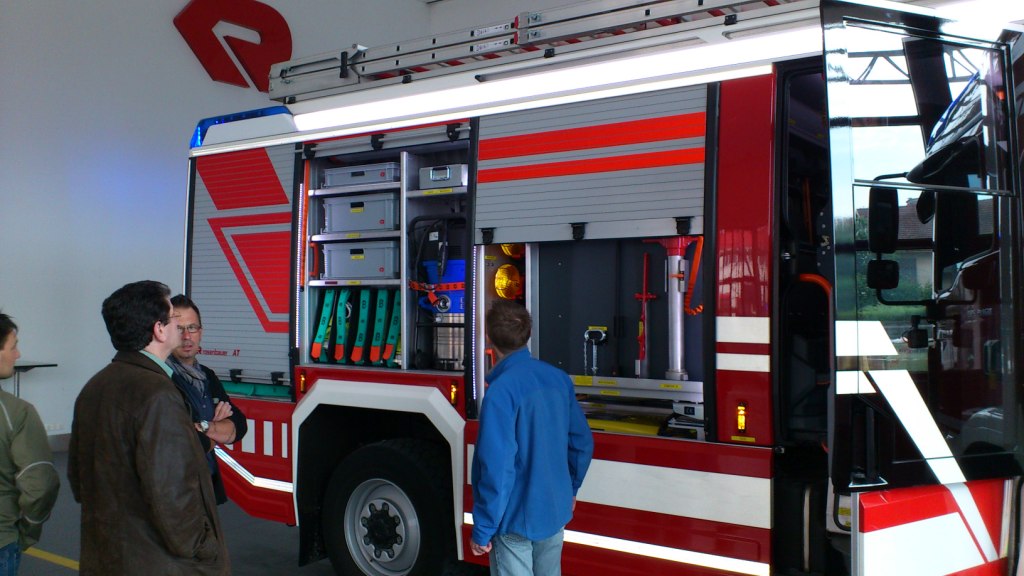 Da die Fahrzeuge der FF Heiligenstadt so langsam in die Jahre kommen, sind Bestrebungen im Gange, ein neues Löschfahrzeug anzuschaffen. Aus diesem Grund nahm die FF Heiligenstadt die Einladung zu einer Werksbesichtigung der Firma Rosenbauer im österreichischen Leonding (bei Linz) an. 7 Kameraden machten sich am 6. Juni um 4.30 Uhr auf den Weg. Die Führung begann mit einem kurzen Abriss der Firmengeschichte und einem Überblick des Portfolios und der Niederlassungen der Firma Rosenbauer. Anschließend konnten wir die Werkshallen besichtigen. Leider war das Fotografieren innerhalb der Hallen nicht erlaubt. Über den Feibereich kamen wir dann in den Abholbereich. Hier wurde uns ein Vorführfahrzeug bereitgestellt, das wir genau unter die Lupe nahmen. Ein Mittagessen und ein Gespräch über die Möglichkeiten, ein Fahrzeug auszurüsten (angefangen bei der Farbwahl bis hin zu den kleinsten Einzelteilen der feuerwehrtechnischen Beladung) bildeten den Abschluss der Führung. Hier die Bilder: Hier wurde gerade die Pumpe getestet. Das Fahrzeug im Vordergrund geht nach Ägypten. Nicht nur Feuerwehrfahrzeuge werden bei Rosenbauer gebaut - auch Wasserwerfer! Dieser imposante Koloss wirkt angsteinflössend! Nochmals das ägyptische Fahrzeug... ... und der Wasserwerfer. Ei