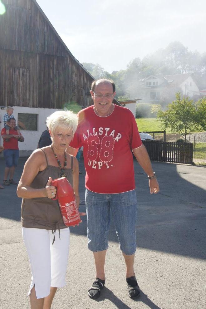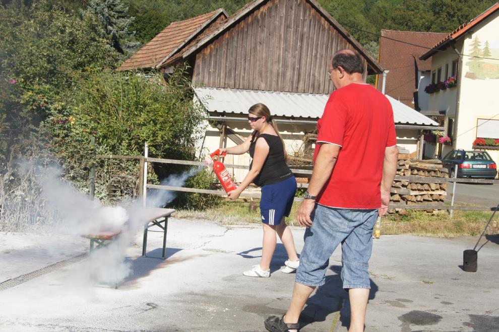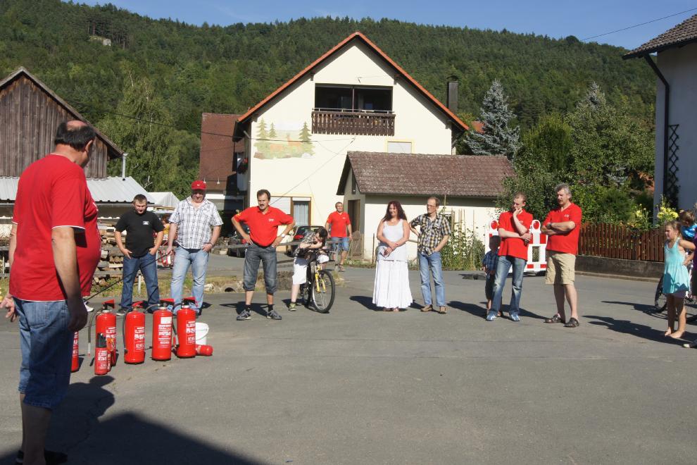 Anlässlich des Dorffestes in Oberleinleiter am Samstag, den 18. August, wurde eine Vorführung von Feuerlöschern angeboten. Selbstverständlich konnte man(n) und frau auch sich praktisch beteiligen. Diese Aktion war eines der Highlights des Dorffestes. Dankeswerter weise wurde die Vorführung von Hans Dusold aus Lohndorf durchgeführt. Anbei ein paar Impressionen: