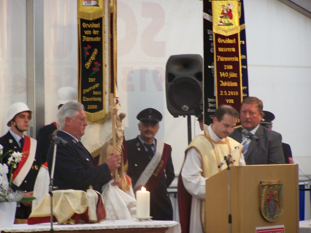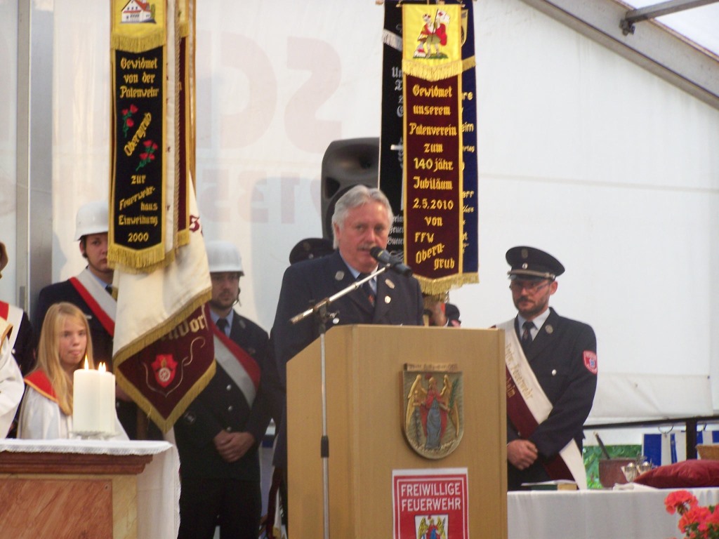 Einige Impressionen: Das alte Gerätehaus: Und nun das neue: An den Wänden waren Bilder mit der "Entstehungsgeschichte" des Hause zu sehen: Im Festzelt, kurz vor demGottesdienst: Beim Festgottesdienst: Die Fahnenabordnungen: Bei der Predigt: Prediger.... ... und Zuhörer Das Fahnenband, gestiftet von den Patenwehren Buttenheim und Mistendorf, wird gesegnet. Die Kommandanten der Patenwehren bringen gemeinsam das Band an der Fahne der FF Oberngrub an. Musikalische Umrahmung des Gottesdienstes. Der Schlusssegen Kurze Hinweise: Das neue Kruzifix wird gesegnet Die Ehrengäste begeben sich zum neuen Gerätehaus - es folgt die kirchliche Segnunhg. Der liturgische Dienst Die Zuschauer Bürgermeister Krämer hängt das Kruzifix auf H.H. Pfarrer Kaiser segnet das Gebäude. Die Kameraden der FF Buttenheim zeigten ihr "Flaggschiff", das HLF 20/16