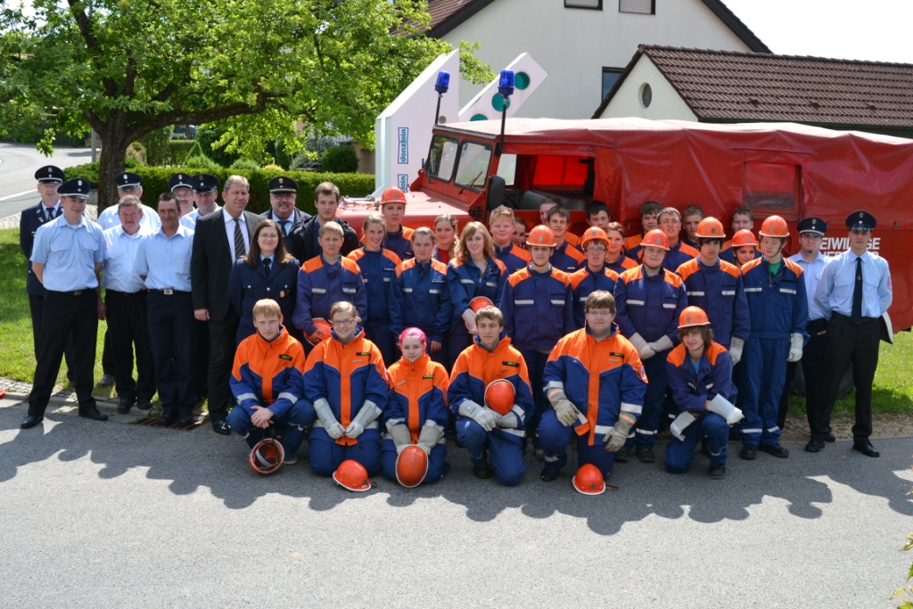 28 Jugendliche stellen sich der Bayrischen Jugendleistungsprüfung in Mistendorf Mistendorf Trotz der allgegenwärtigen Fußball-EM fanden sich am letzten Wochenende fünf Jugendgruppen der freiwilligen Feuerwehren in Mistendorf ein, um dort die Bayerische Jugendleistungsspange abzulegen. Das Wetter bot perfekte Bedingungen für diese wichtige Prüfung im Dienst eines Feuerwehranwärters, so dass Kreisbrandinspektor Reinhold Schumm am frühen Nachmittag die Teilnehmergruppen aus dem Inspektionsbereich 5 herzlich willkommen heißen konnte. In seiner Ansprache betonte er, dass die Jugend die Zukunft der Feuerwehr ist und ihr Engagement von großer Bedeutung sei. Trotz dieser Herausforderung wünscht er sich aber vor allem, dass die Jugendlichen Spaß an ihrer Arbeit haben. Anschließend begrüßte Christoph Krombholz, Kommandant der freiwilligen Feuerwehr Mistendorf, alle Teilnehmerinnen und Teilnehmer, Betreuer und Schiedsrichter, sowie die Vertreter der Gemeinden und wünschte viel Erfolg bei den anstehenden Prüfungen. Auch Andreas Schwarz, Bürgermeister der ausrichtenden Gemeinde Strullendorf, ergriff das Wort und lobte die Jugendlichen, die im Dienst der Gemeinschaft ihre Freizeit opfern, um ehrenamtlich tätig zu sein. Als besonders erfreulich stellte KBI Reinhold Schumm die erstmalige Teilnahme zweier Jugendgruppen der Gemeinde Heiligenstadt an einer Abnahme der Inspektion 5 heraus. Auch Heiligenstadts Bürgermeister Helmut Krämer begleitete seine Jugendlichen und fieberte bei den Übungen mit. Nach den Grußworten ging es für die 28 jungen Feuerwehrleute aus Heiligenstadt, Herzogenreuth, Mistendorf, Pommersfelden / Limbach, Röbersdorf und Herrnsdorf auch schon los. Unter den strengen Augen der zehn Schiedsrichter musste sich jeder einzeln oder zusammen in der Gruppe in zehn verschiedenen Disziplinen behaupten. Darunter waren Aufgaben, wie das Kuppeln einer Saugleitung, Knotenkunde, Zielspritzen mit der Kübelspritze, Gerätekunde und vieles mehr. Auf die Praxis folgte die Theorie, wobei kniffelige Testfragen beantwortet werden mussten. Die zu bewältigenden Aufgaben verlangten den vollen körperlichen, geistigen und sozialen Einsatz der Jugendlichen. Dieses Engagement und eine gute Vorbereitung der Jugendlichen durch ihre Jugendwarte konnten auch die Zuschauer bei jeder Station erkennen. Am späteren Nachmittag durfte Kreisbrandinspektor Reinhold Schumm dann erfreut verkünden, dass alle 28 Teilnehmer die bayerische Jugendleistungsprüfung bestanden haben. Dabei wurde schnell klar, dass eine Frauenquote in der Jugendfeuerwehr kein Thema sei. Unter den 28 Jugendlichen befanden sich neun Feuerwehranwärterinnen, die ihren männlichen Kollegen in nichts nach standen. Die Abzeichen nahmen die Jugendfeuerwehrler mit den Glückwünschen des Bürgermeisters Andreas Schwarz entgegen. Die Schlussworte von KBI Schumm, Kommandant Krombholz und Bürgermeister Schwarz machten eines deutlich: jeder der Teilnehmer kann auf seine erbrachte Leistung sehr stolz sein. Alle drei sahen die Zukunft der teilnehmenden Feuerwehren mit dem Einsatzwillen der Jugendlichen auf einem guten Wege und sie hoffen, dass die Anwärter den Feuerwehren lange treu bleiben werden. Zu guter letzt galt noch ein Dank den Schiedsrichtern, die wie jedes Jahr auf ihre Gage verzichteten, um diese großzügig den Kassen der Jugendgruppen spenden zu können. Im Anschluss an die Verleihung der Abzeichen klang die erfolgreiche Abnahme gemütlich und kameradschaftlich aus. 12.06.12 Schütz Alexandra, Krombholz Christoph