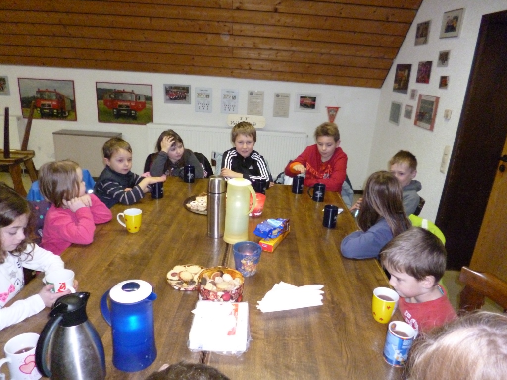 Die Weihnachtsfeier fand bei den Lösch-Schnecken am 14.12.13 statt. Zuerst gingen wir gemeinsam zu der großen Krippe am Marktplatz, anschließend besichtigten wir einige Krippen des Krippenweges. Als wir zurück im Feuerwehrhaus angekommen waren, erzählten die Kinder zusammen die Weihnachtsgeschichte. Danach gab es gegrillte Bratwürste. Wir erhielten Besuch aus der Vorstandschaft, von Paul und Marco. Gemütlich saßen wir bei Plätzchen und Punsch beisammen und unterhielten uns darüber, wie jeder Einzelne Weihnachten feiert. Am Ende erhielt jedes Kind ein kleines Geschenk zu Weihnachten.