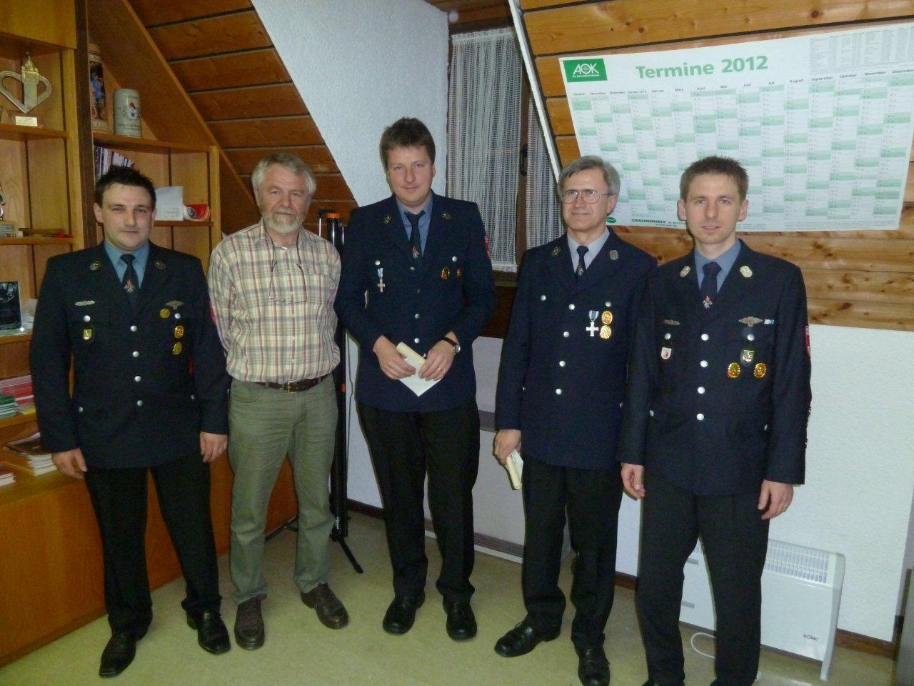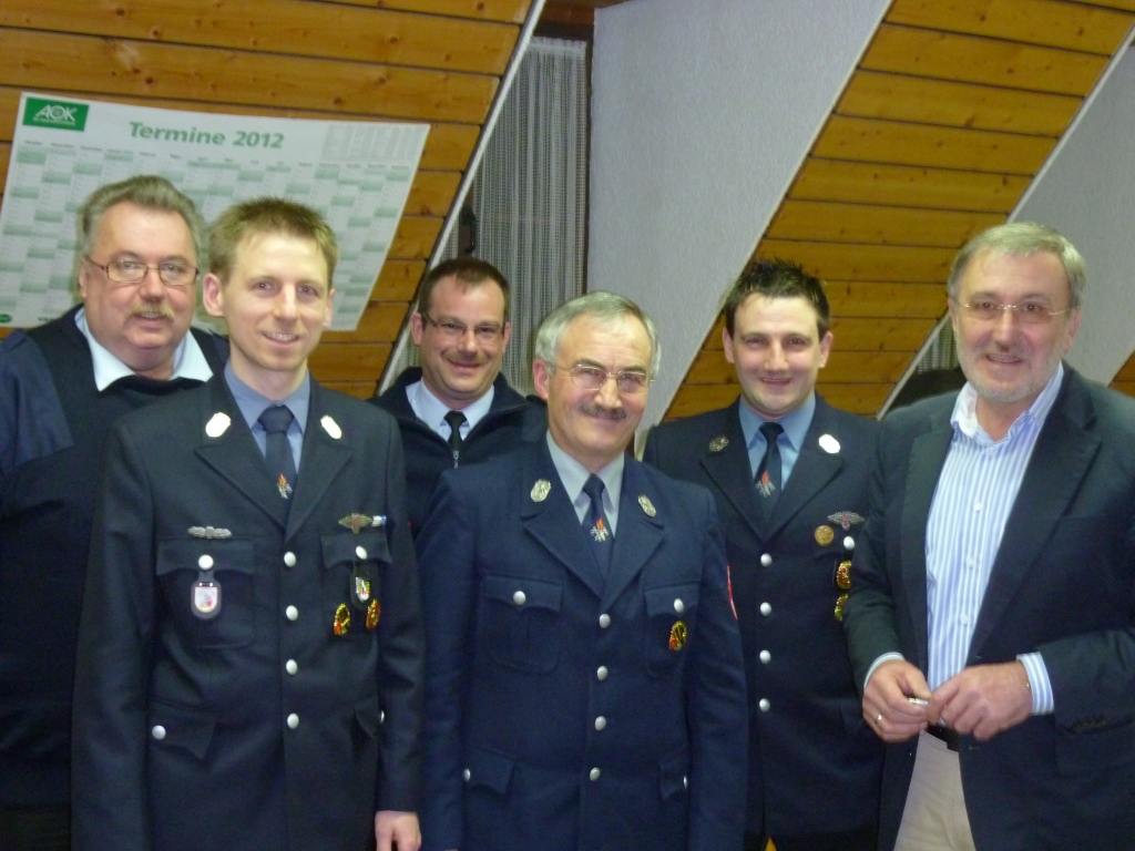 unser Zeugwart Siegmund Göller diese Amt nun schon 30 Jahre inne hat. Anschließend gab Zeugwart Siegmund Göller seinen Bericht über Fahrzeuge und Gerätschaften ab. Er zählte die Reparaturen und Wartungen des letzten Jahres auf und gab einen Ausblick für 2012. Beim anwesenden Bürgermeister Helmut Krämer bedankte er sich für die gute Zusammenarbeit. Ein wichtiger Tagesordnungspunkt waren die Wahlen. Es waren der 2. Kommandant, Kassierer, Schriftführer, die Kassenprüfer und der Vergnügungsausschuss neu zu besetzen. Als 2. Kommandant wurde Berthold Bächmann in seinem Amt bestätigt. Alle anderen zu wählenden Ämter wurden mit neuen Personen besetzt, da die amtierenden "Funktioner" nicht mehr kandidierten. Zu erwähnen ist, dass die Amtsinhaber teilweise mehr als 20 Jahre ihre Position inne hatten und immer zuverlässig ihre Aufgaben erfüllten. Auch von dieser Seite her ein herzliches Vergelt's Gott! Gewählt wurden: Herzlichen Glückwunsch allen Neugewählten! Im Jahr 2012 stehen wieder etliche Termine an, die in der