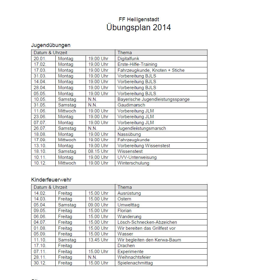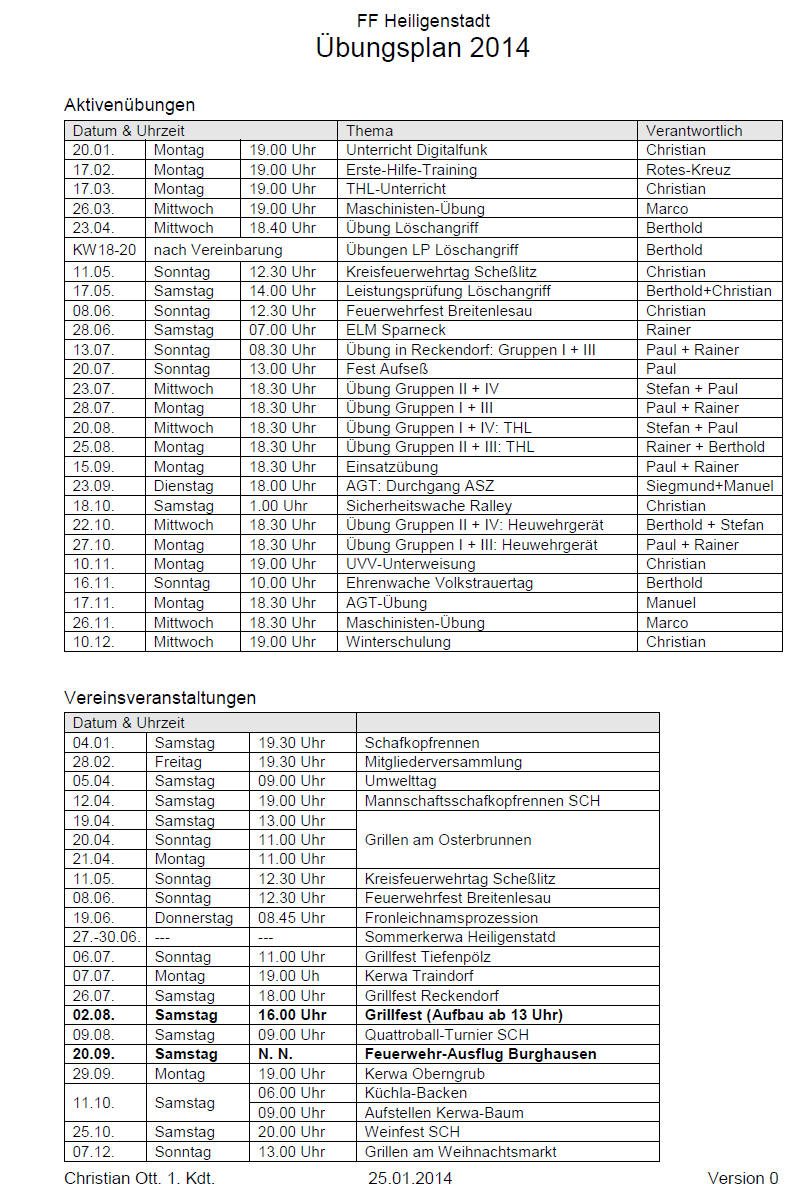 Auf dieser Seite findet ihr die Termine für Übungen und Veranstaltungen. Im Einzelnen: